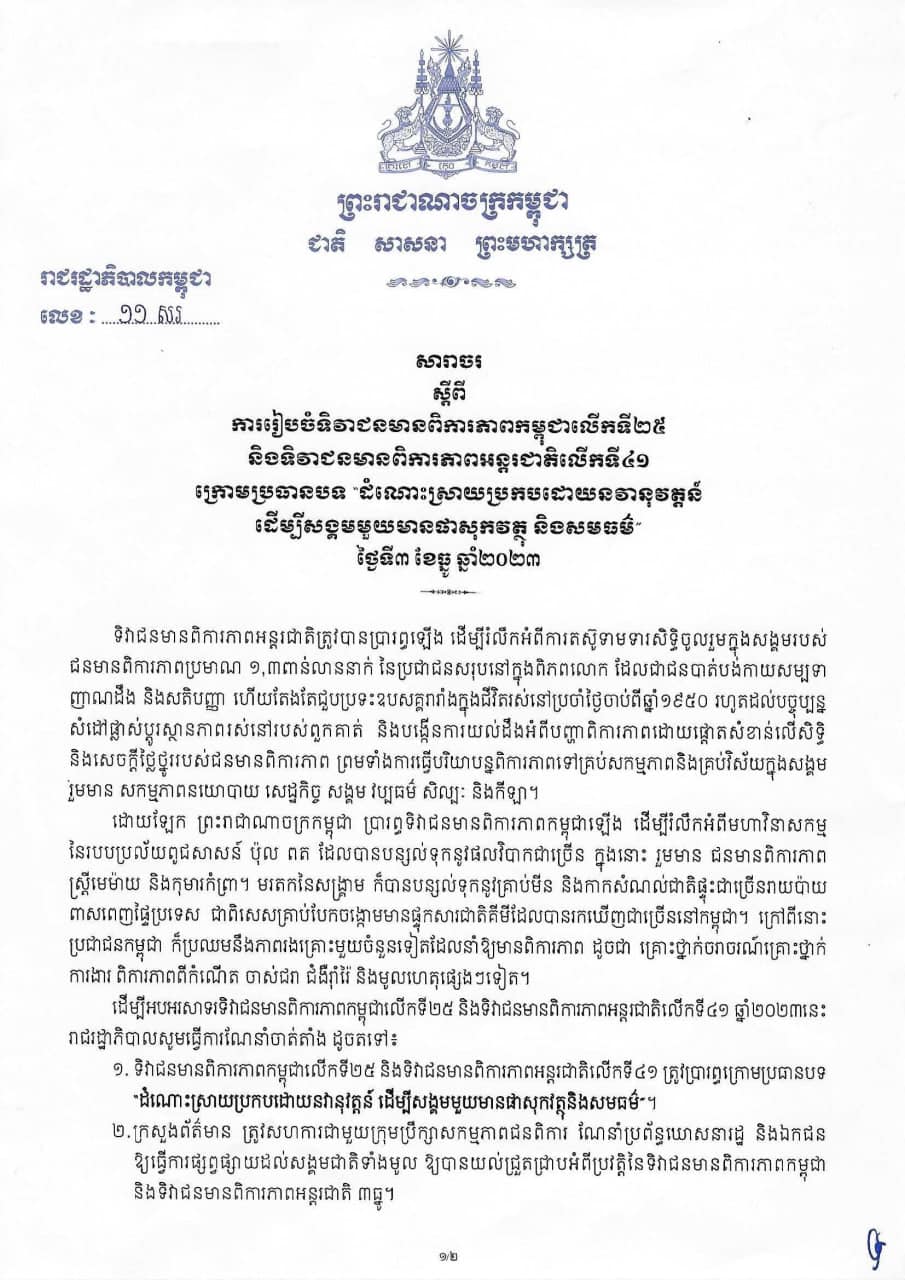 សេចក្តីណែនាំស្តីពីការចេញសារាចរណែនាំស្តីពី ទិវាជនពិការកម្ពុជាឆ្នាំ 2018 និងទិវាជនពិការមានកម្រិតអន្តរជាតិទី 4 ក្រោមប្រធានបទ « ដំណោះស្រាយនុយ ណវត្ត